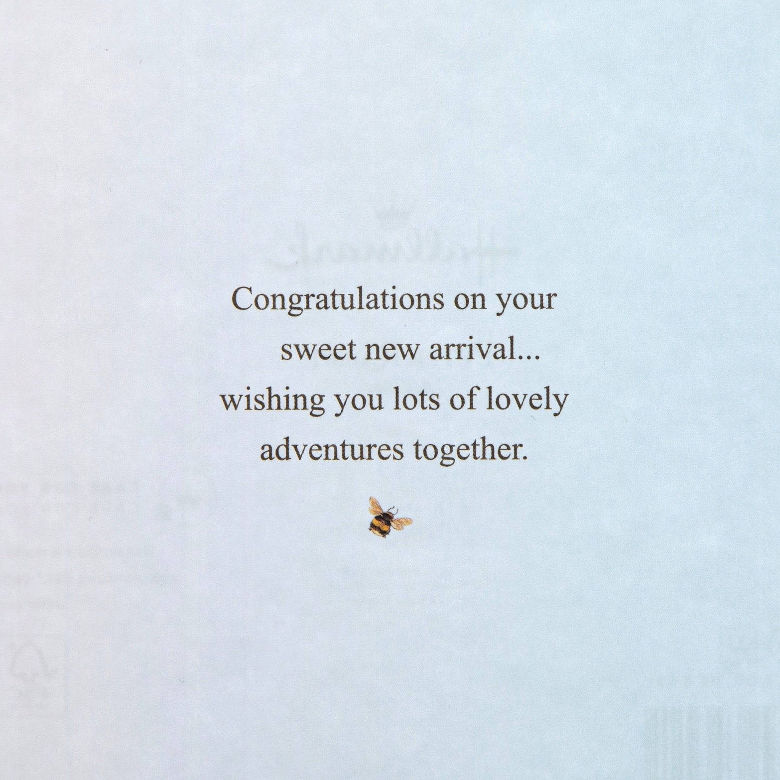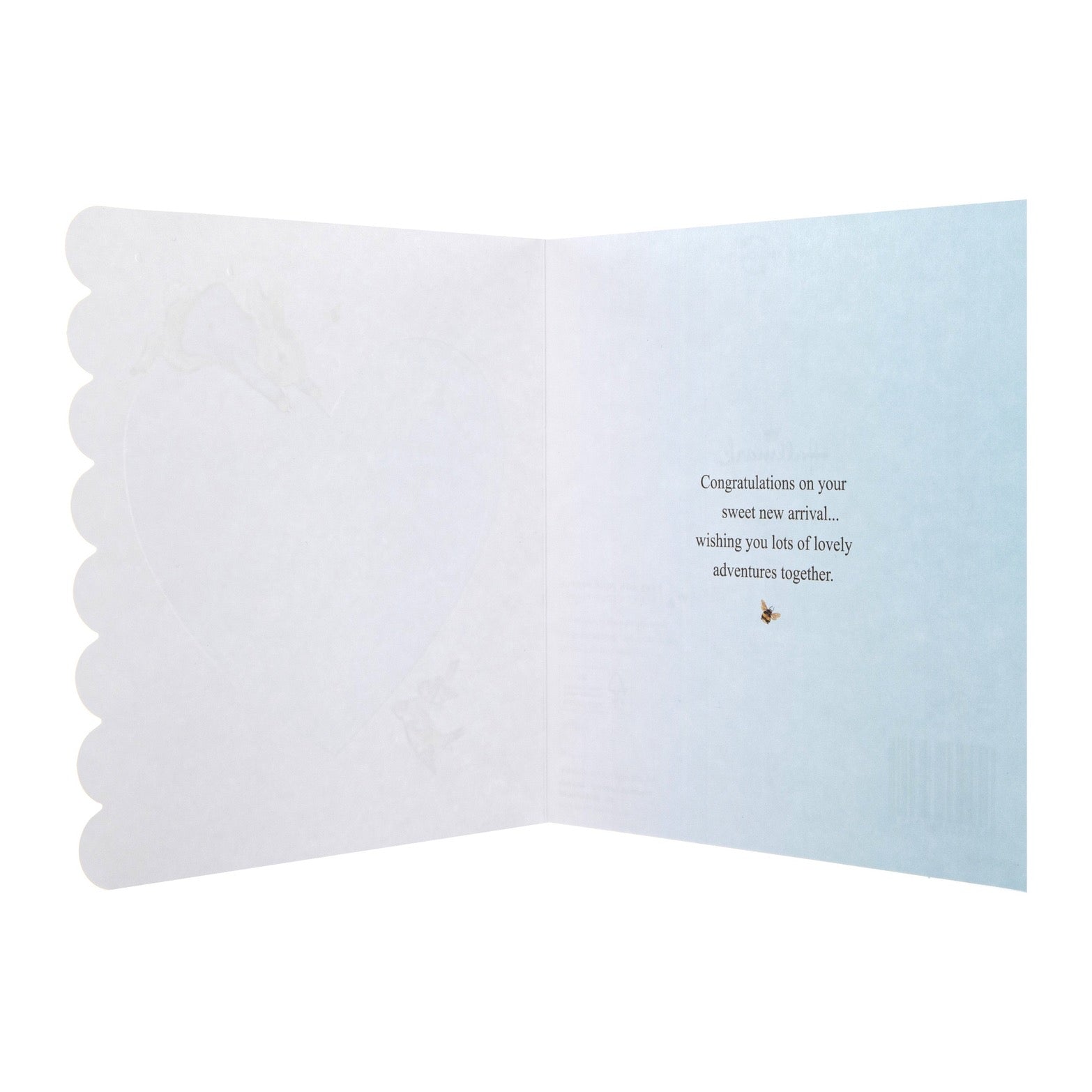 • Message inside: Congratulations on your sweet new arrival… wishing you lots of lovely adventures together